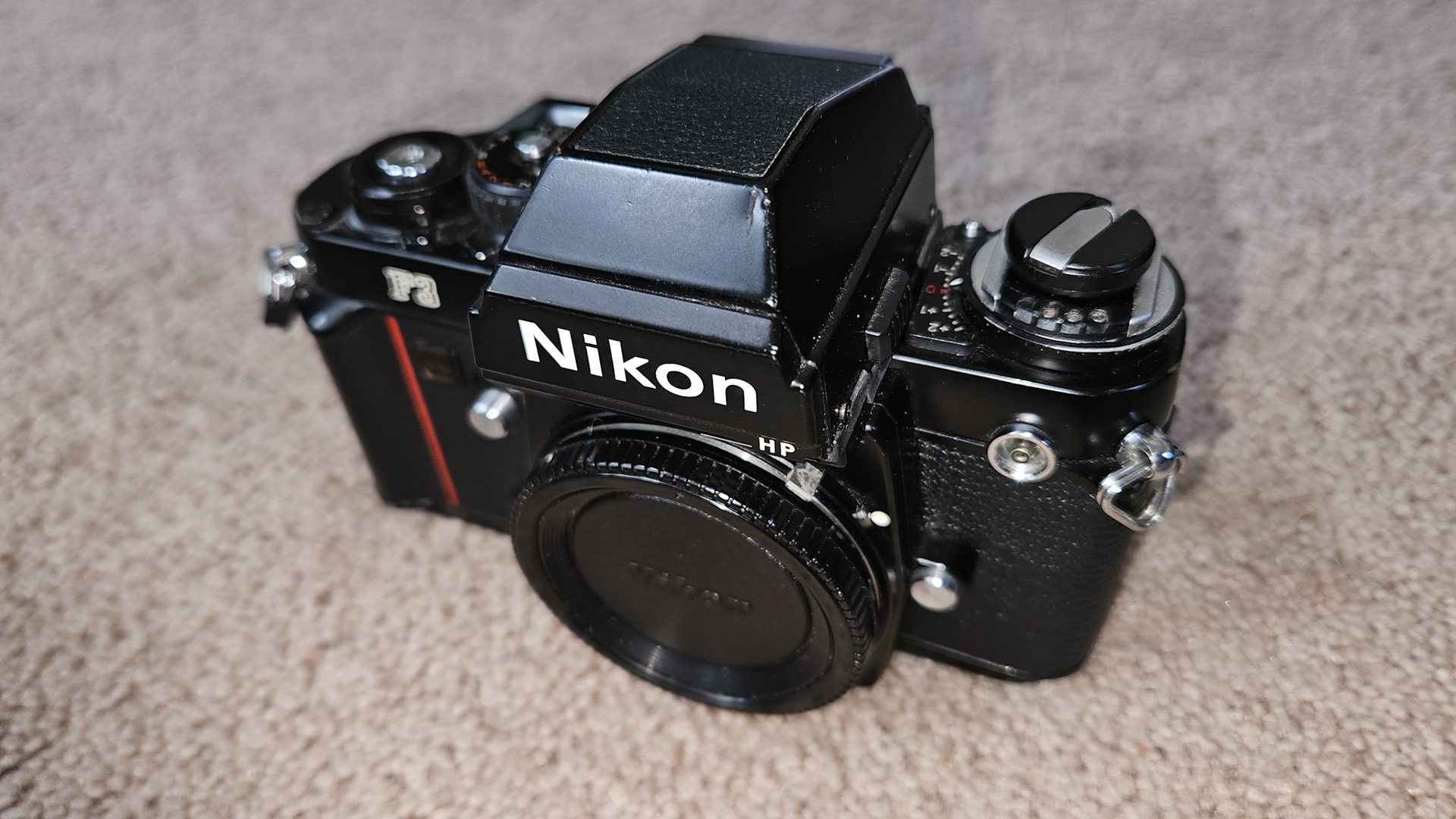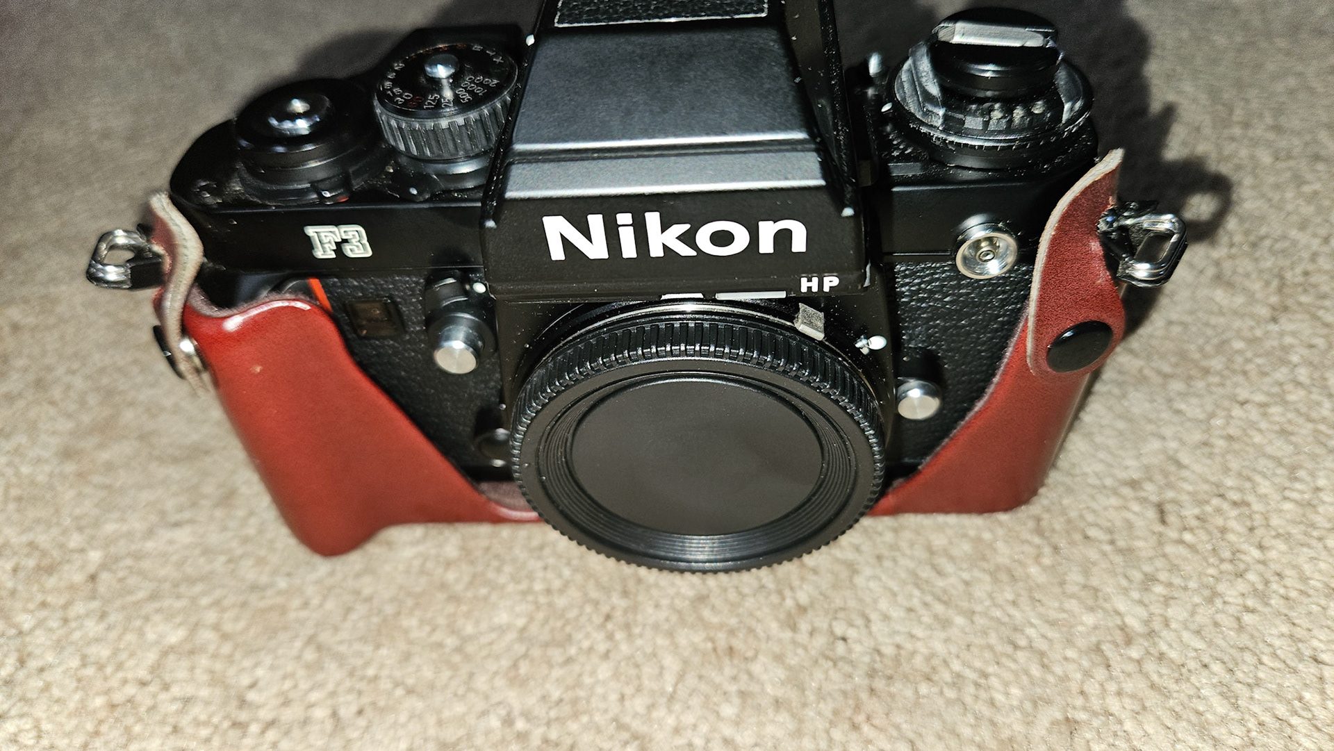 The Nikon F3 is a professional 35 mm SLR film camera with an electronic shutter, Nikon F bayonet mount, and aperture‑priority auto exposure plus full manual control. It was Nikon’s flagship from 1980 into the late 1990s and is one of the longest‑produced pro film bodies.