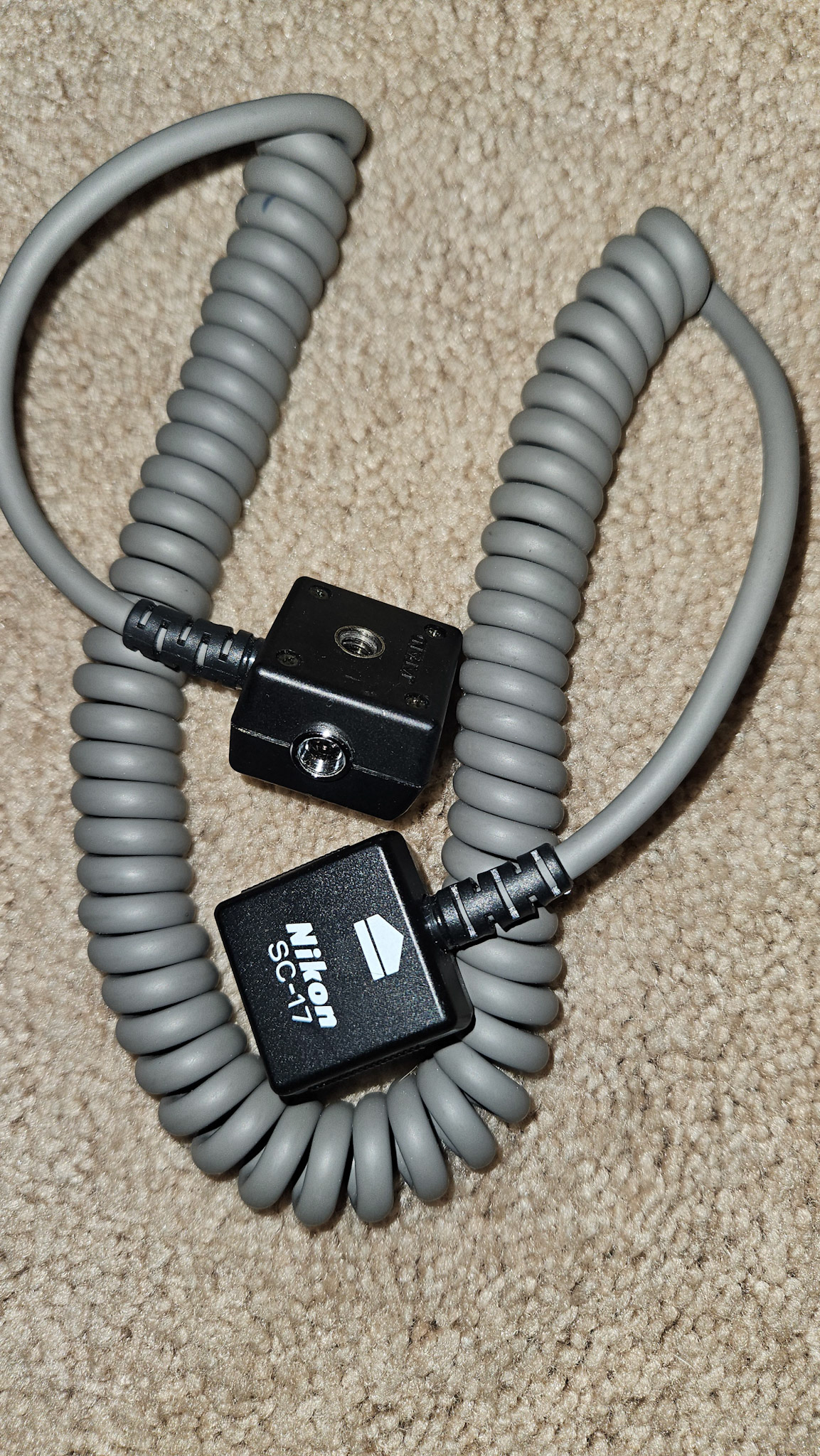 The Nikon SC-17 is a coiled TTL remote cord that extends a compatible Nikon Speedlight off-camera while preserving full TTL metering, automatic zoom head adjustment, and ready-light signaling.