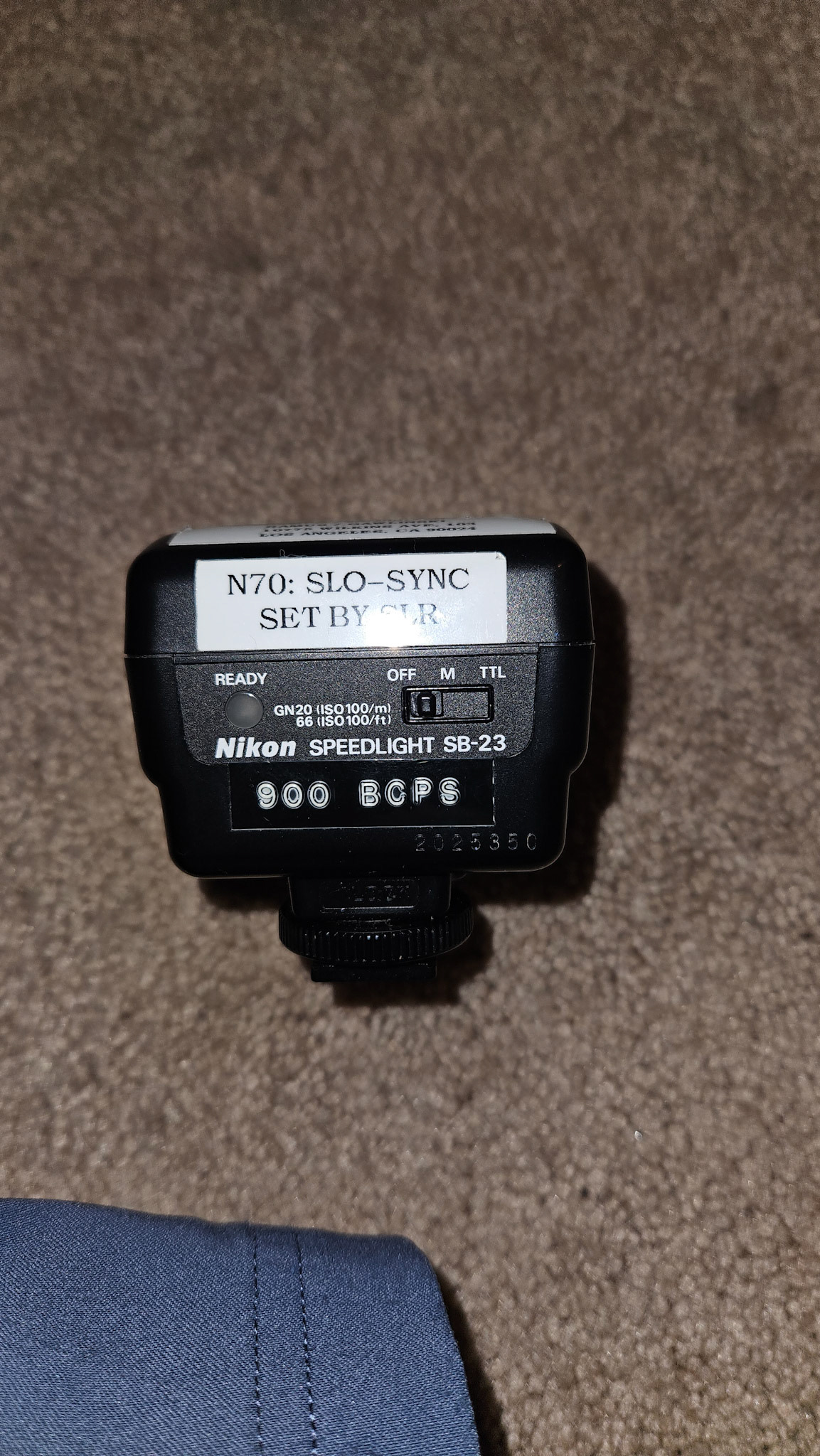 The Nikon Speedlight SB-23 is a very compact TTL hot-shoe flash designed mainly for Nikon AF 35 mm SLRs, optimized for fill-flash and close indoor work rather than raw power. It offers TTL auto flash plus a full-power manual mode, making it simple but effective for small-camera, on-the-go setups.