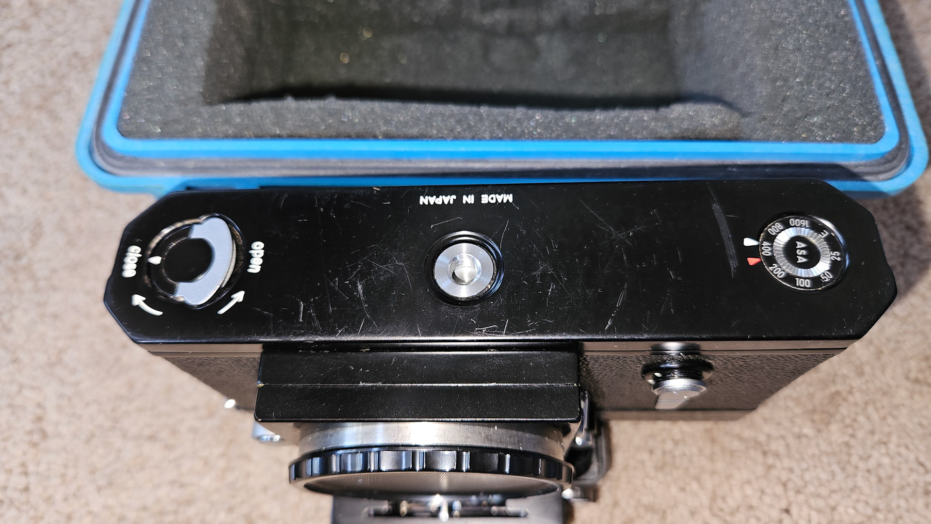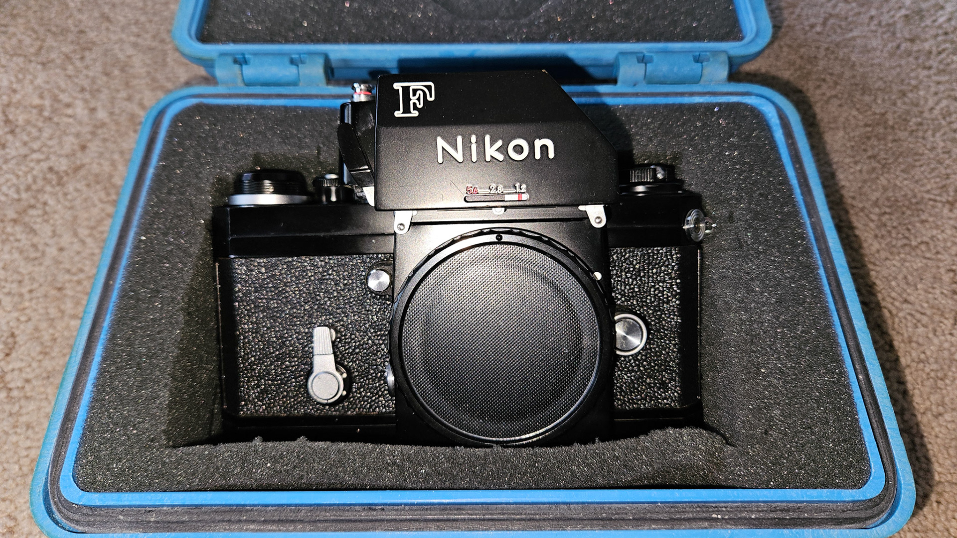 The Nikon F is a 35 mm, fully mechanical SLR film camera using the Nikon F bayonet mount and standard 24×36 mm image size on 35 mm film. It was produced from 1959 to 1973 and established the F‑mount system still used (in updated form) on modern Nikon cameras.